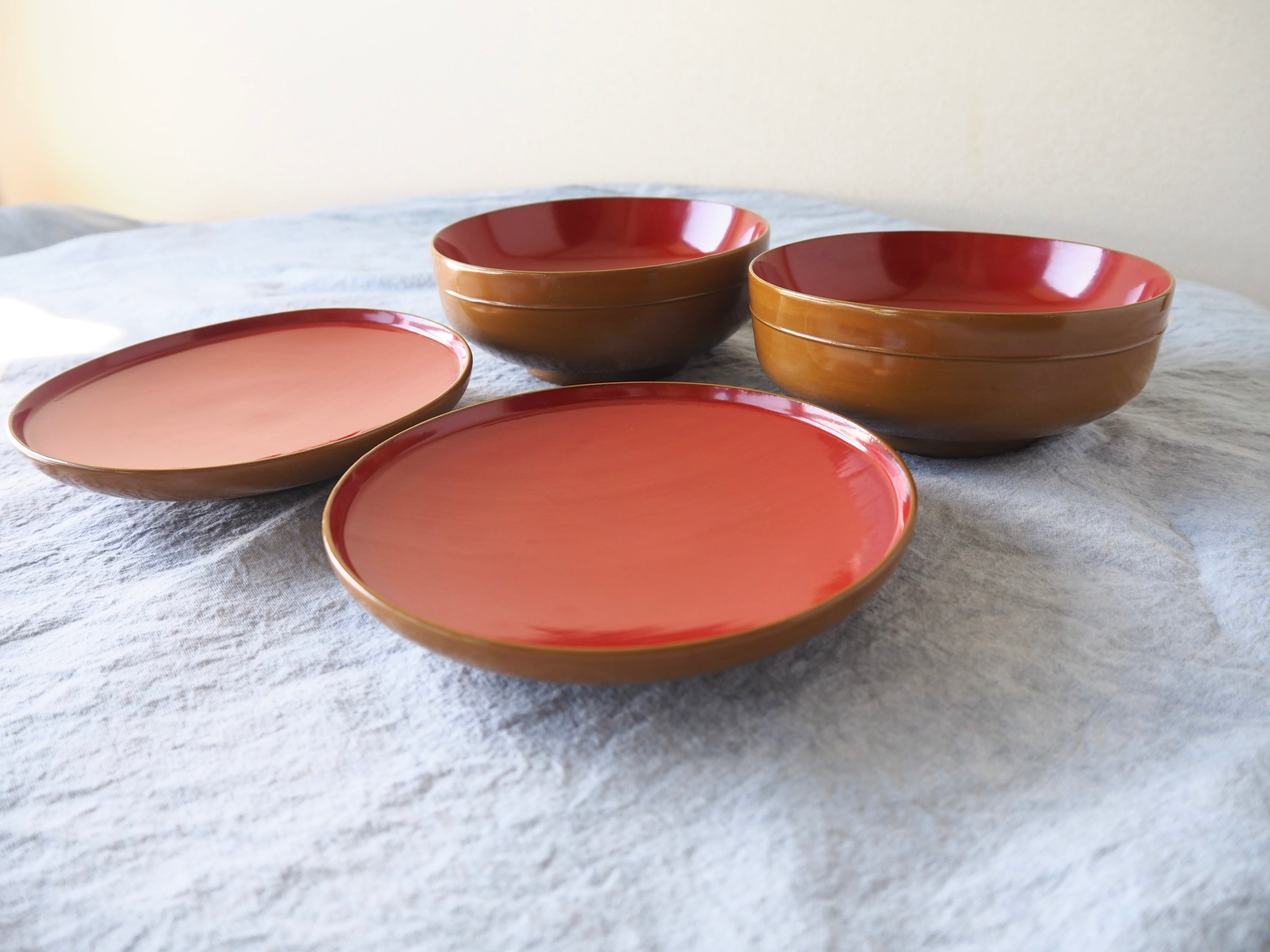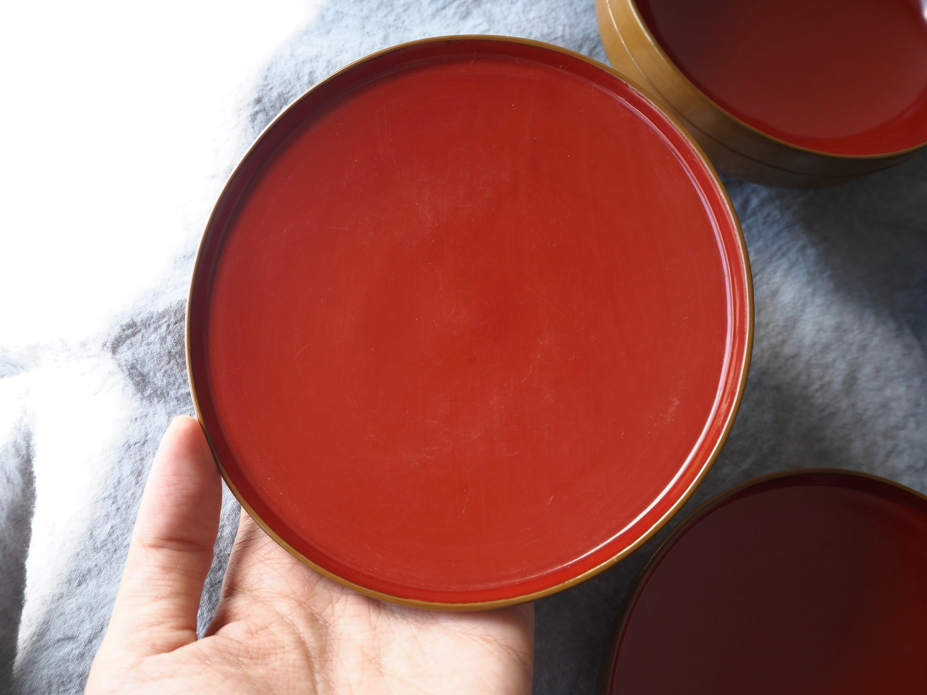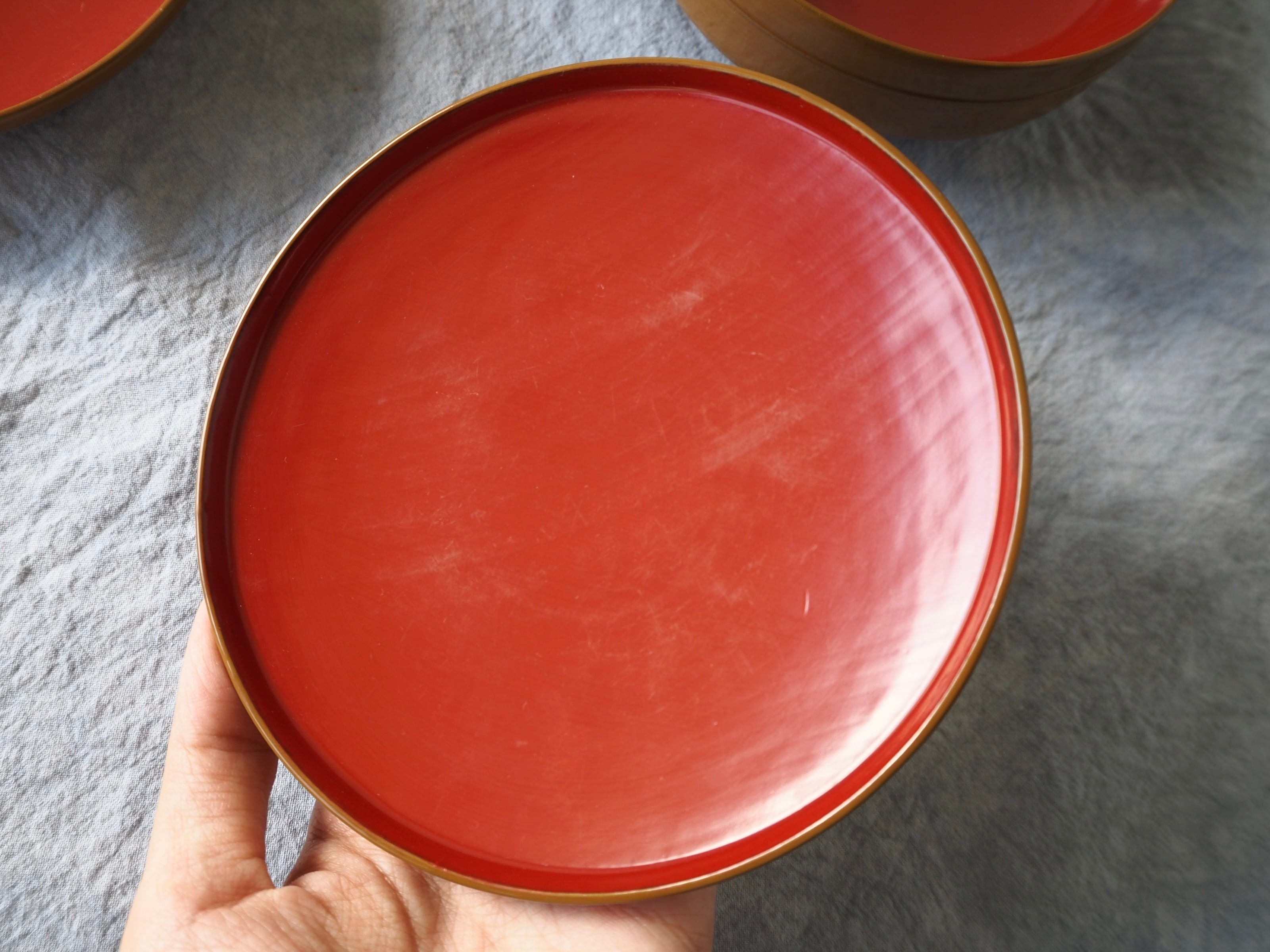 【古道具を暮らしに。 時代 黄漆 内朱塗 漆器 平椀 2客セット 懐石椀 煮物椀】のご紹介です。