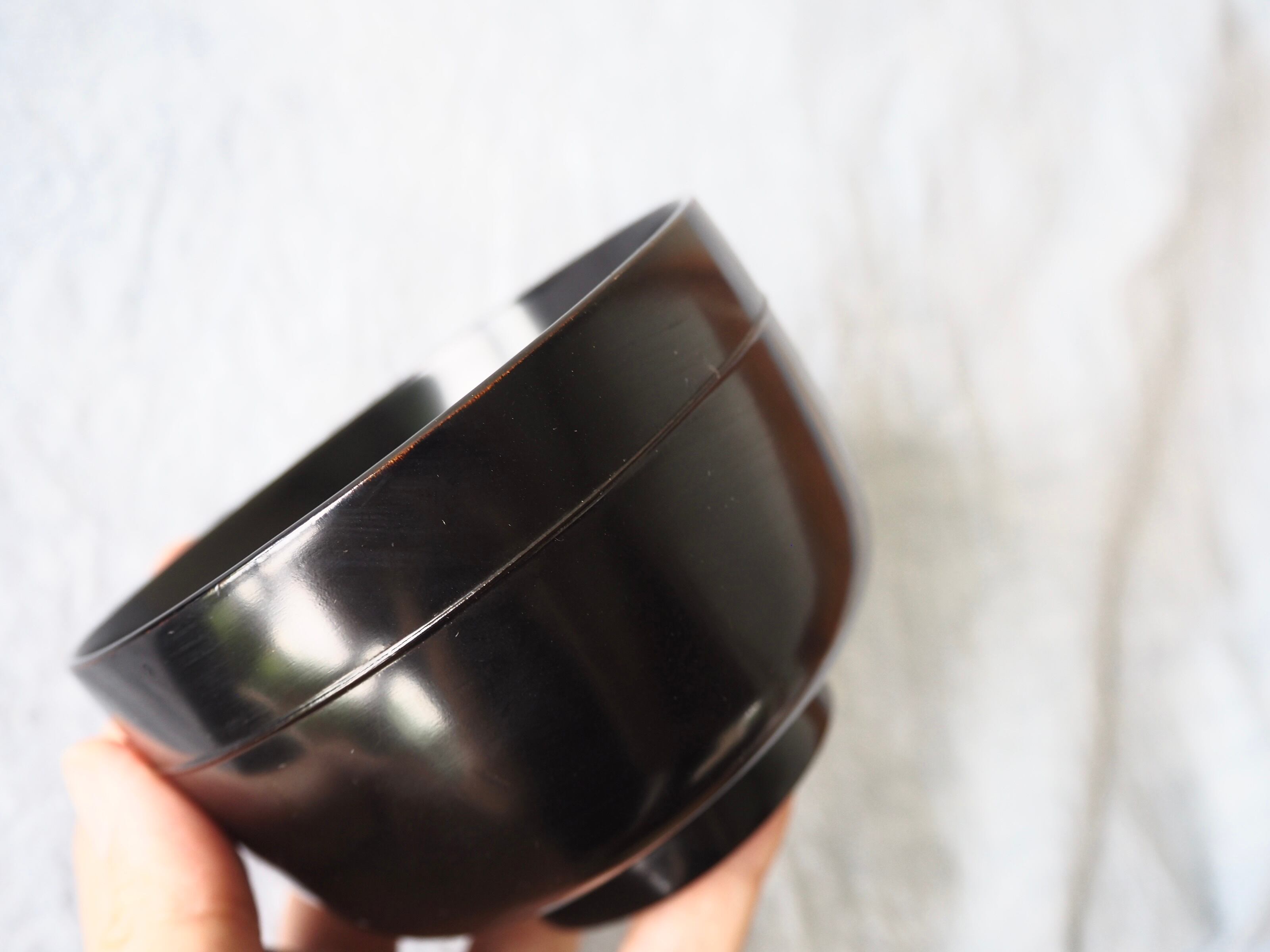【能登に伝わる古民藝 時代 黒漆 漆器 向付 2客 小鉢】のご紹介です。