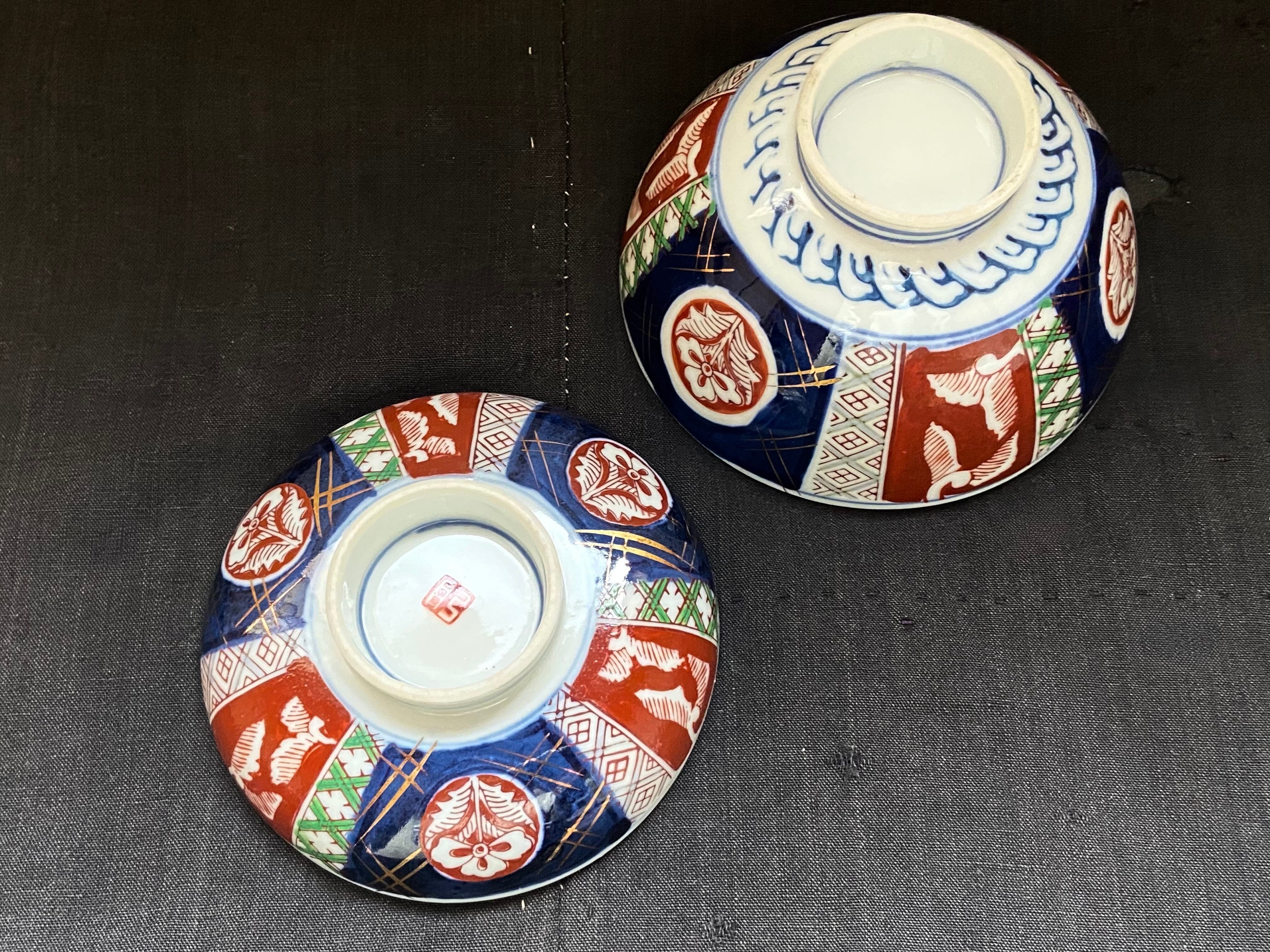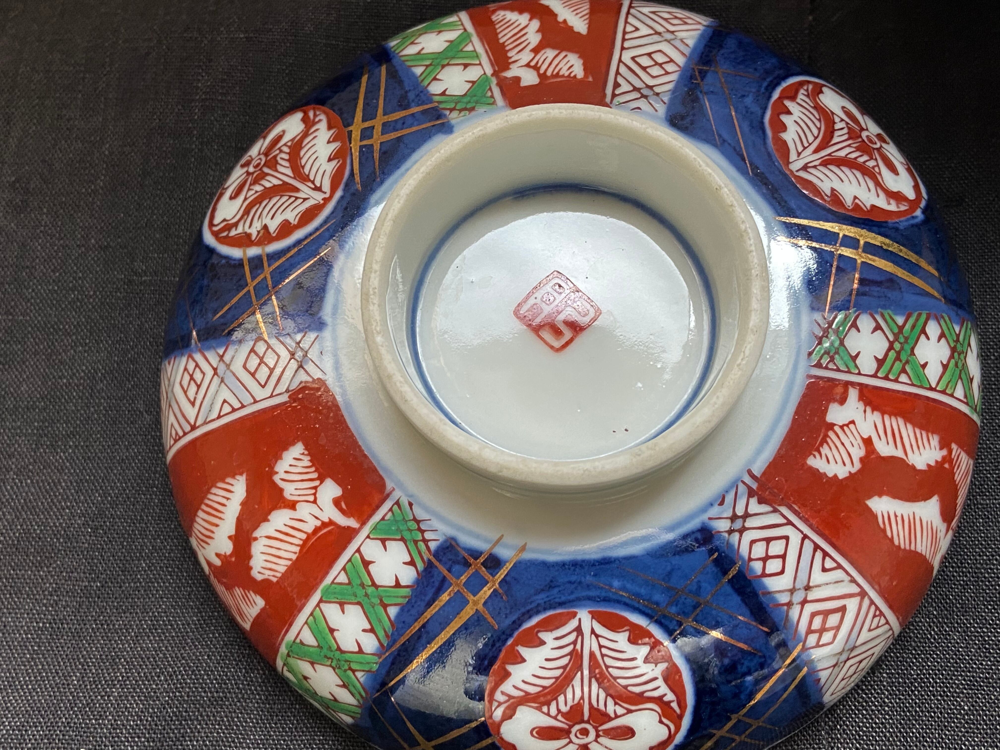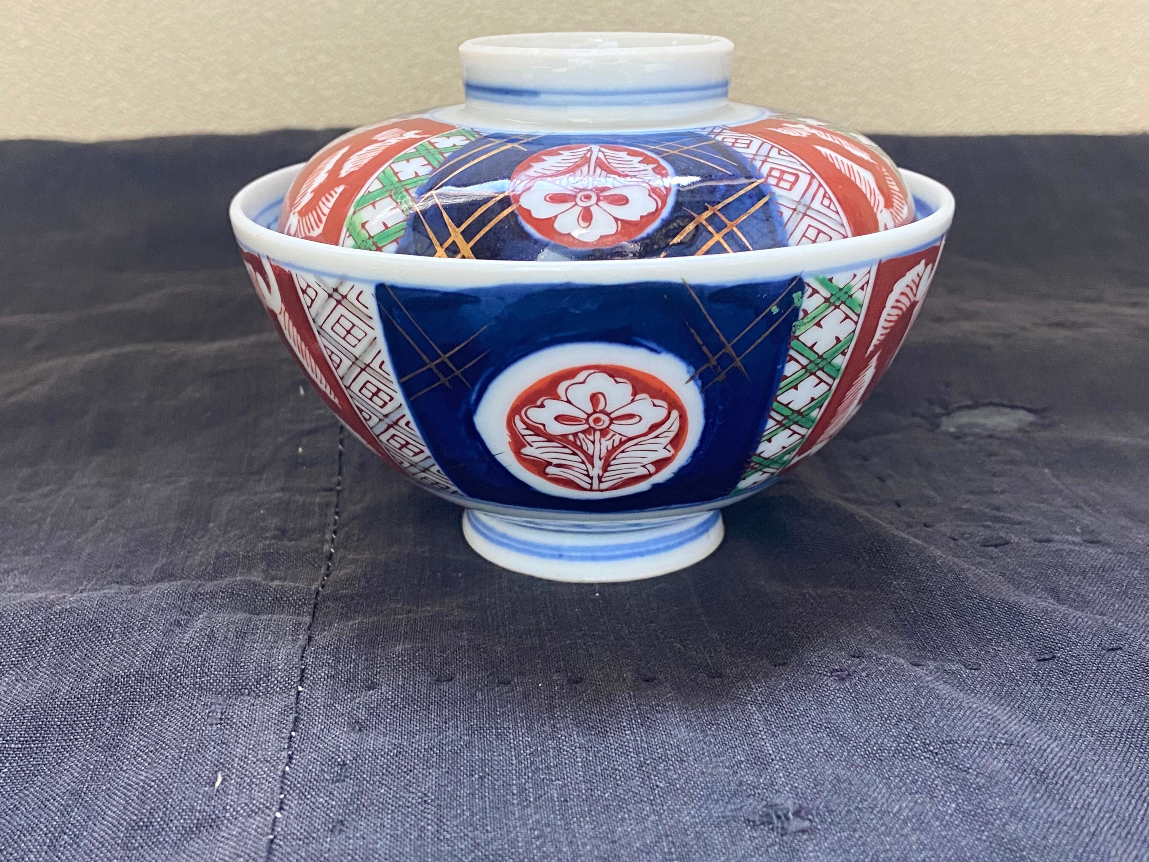 能登蔵出し 古伊万里 色絵金彩 月弓 銘有 蓋付椀 / 時代 茶碗 蓋碗