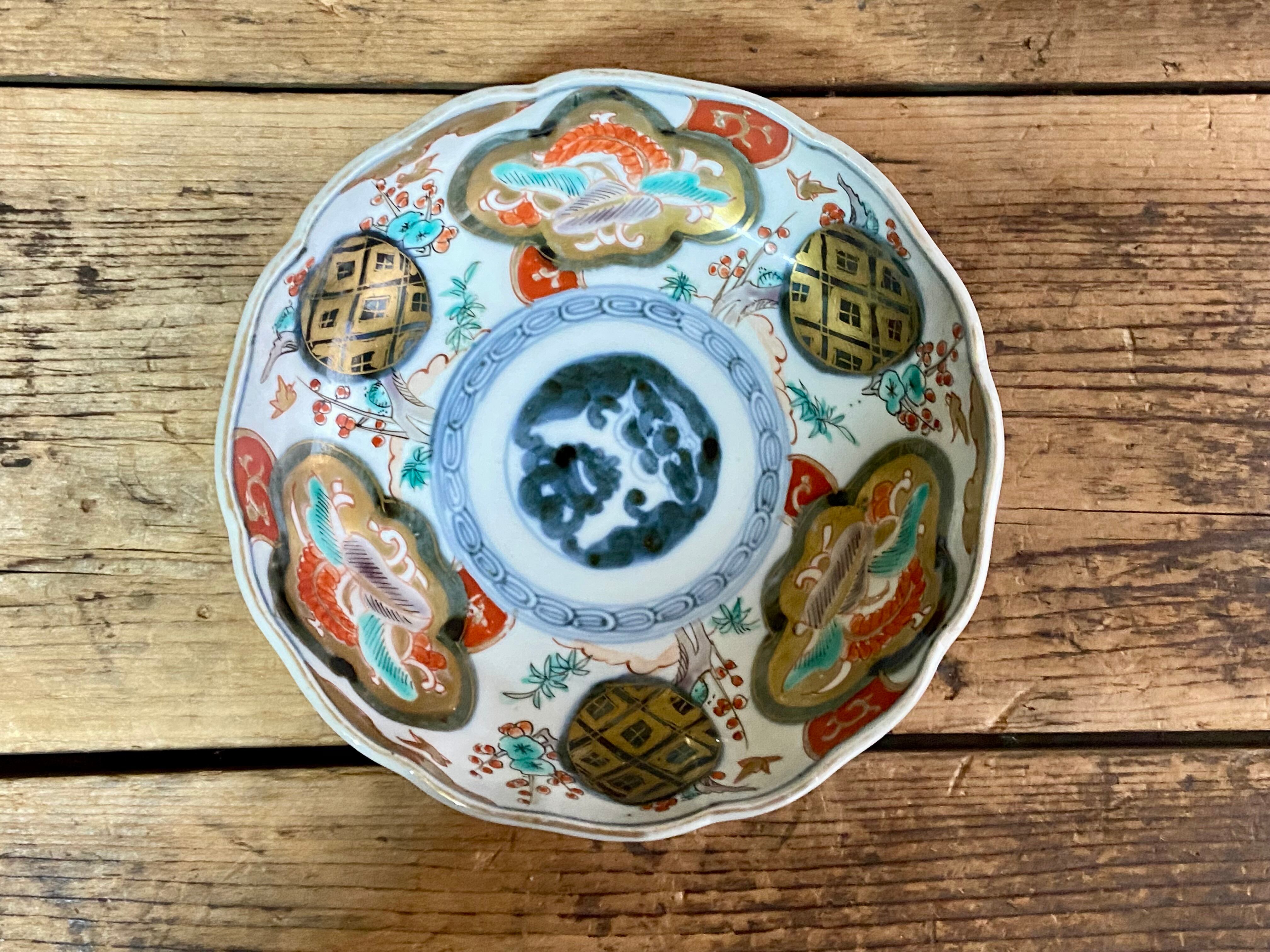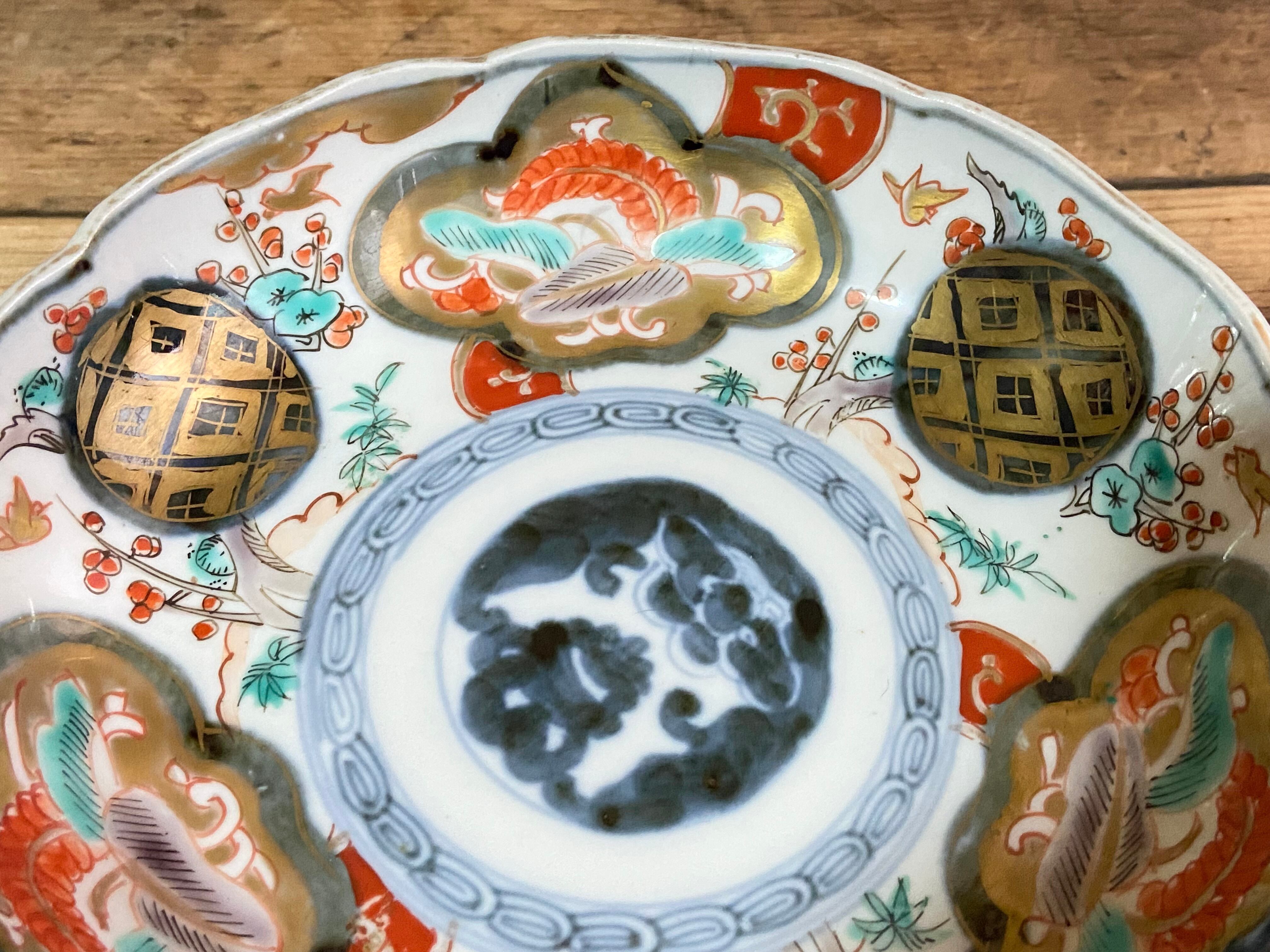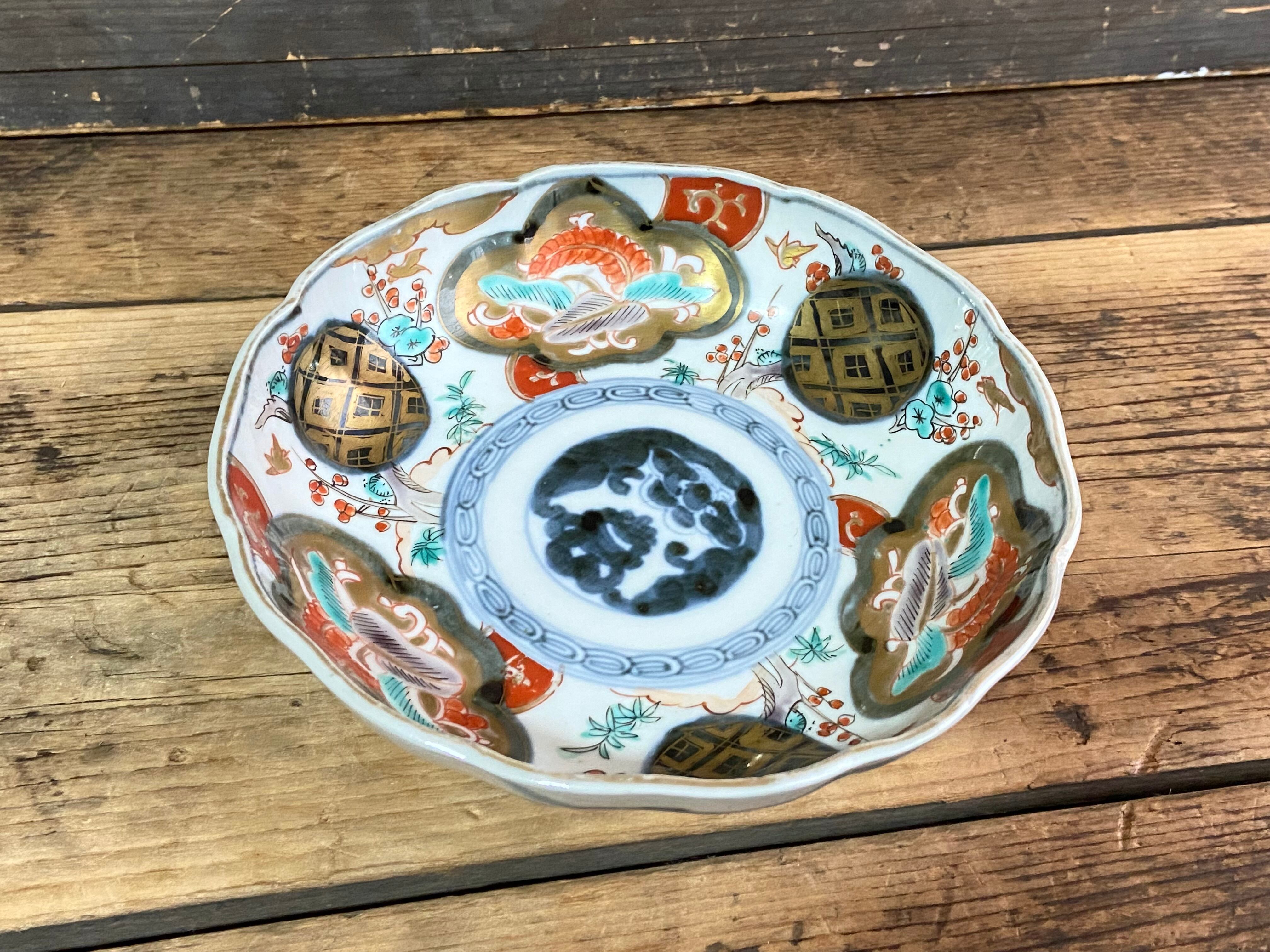 能登蔵出し 古伊万里 色絵 金彩 窓絵文 輪花皿 / 深皿 膾皿