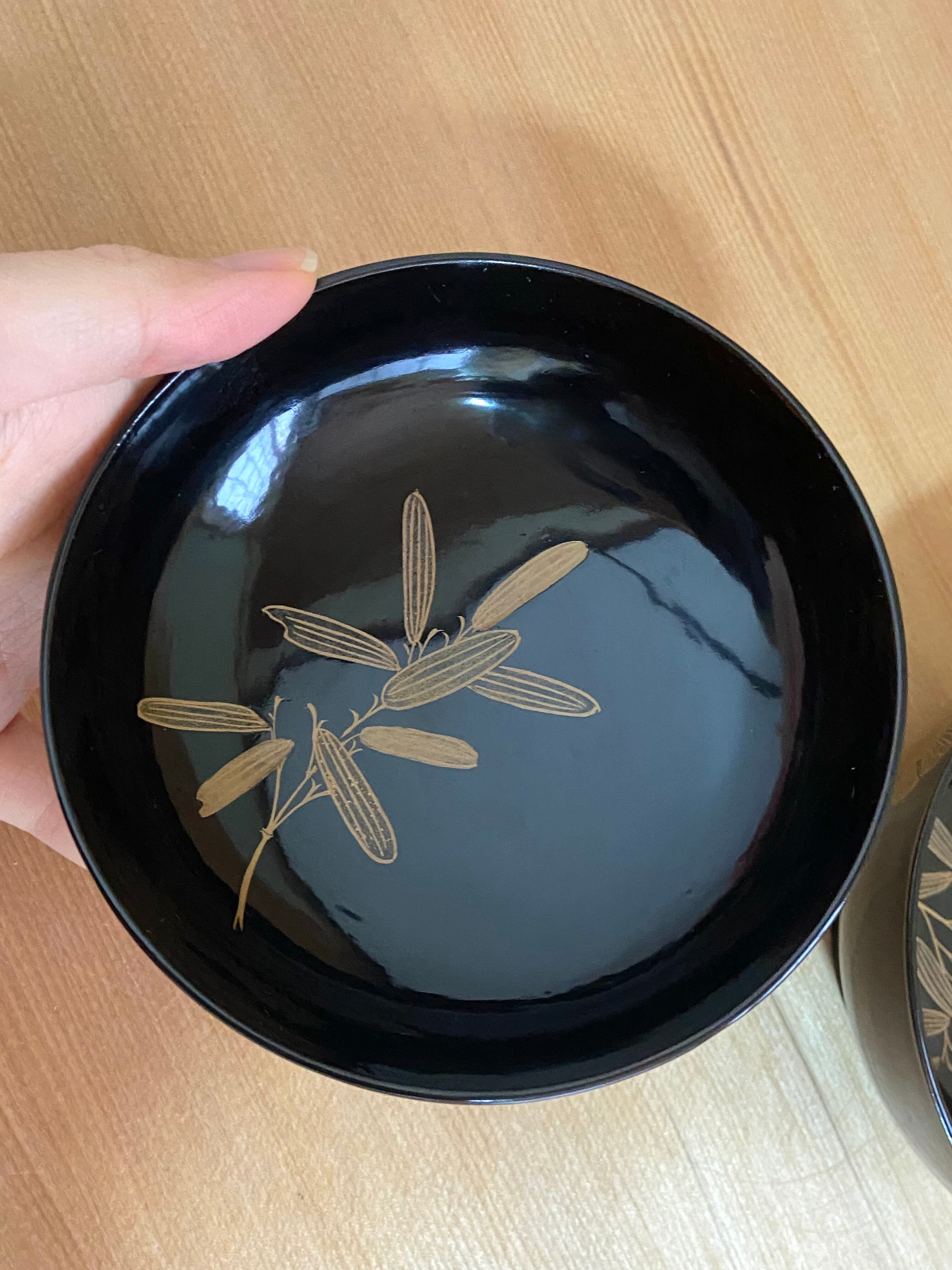 漆ならではの黒色に、やわらかな金の蒔絵。