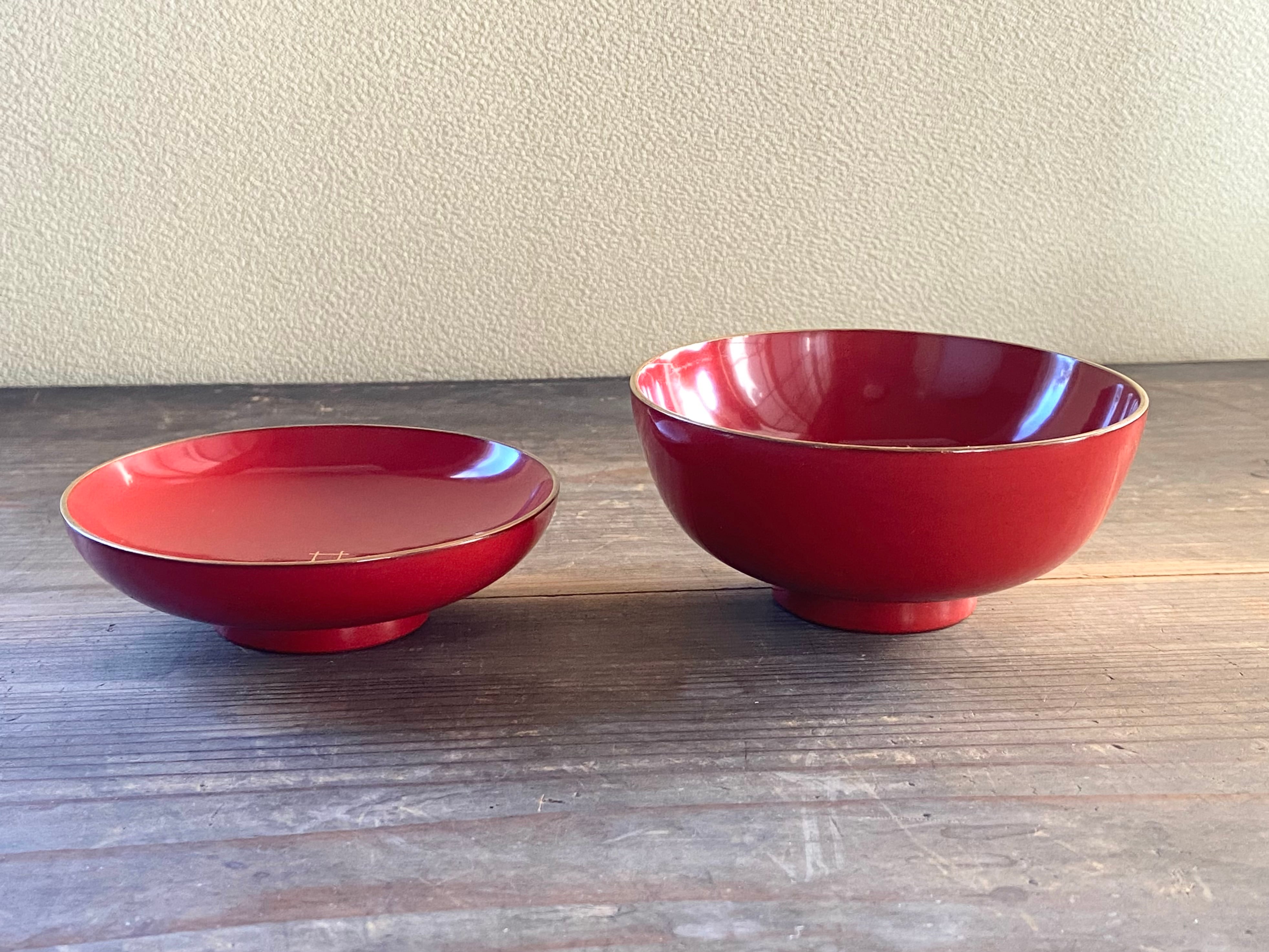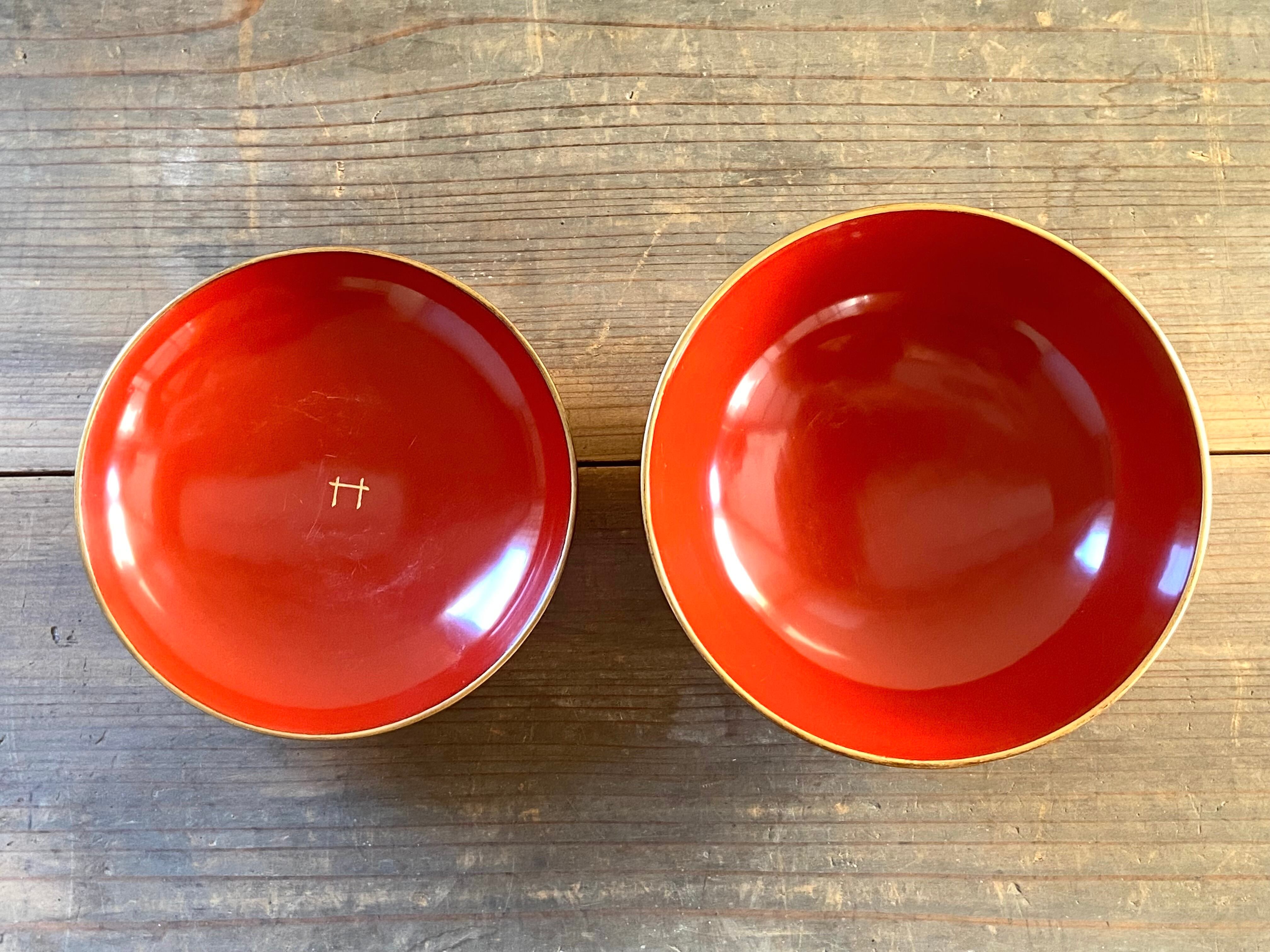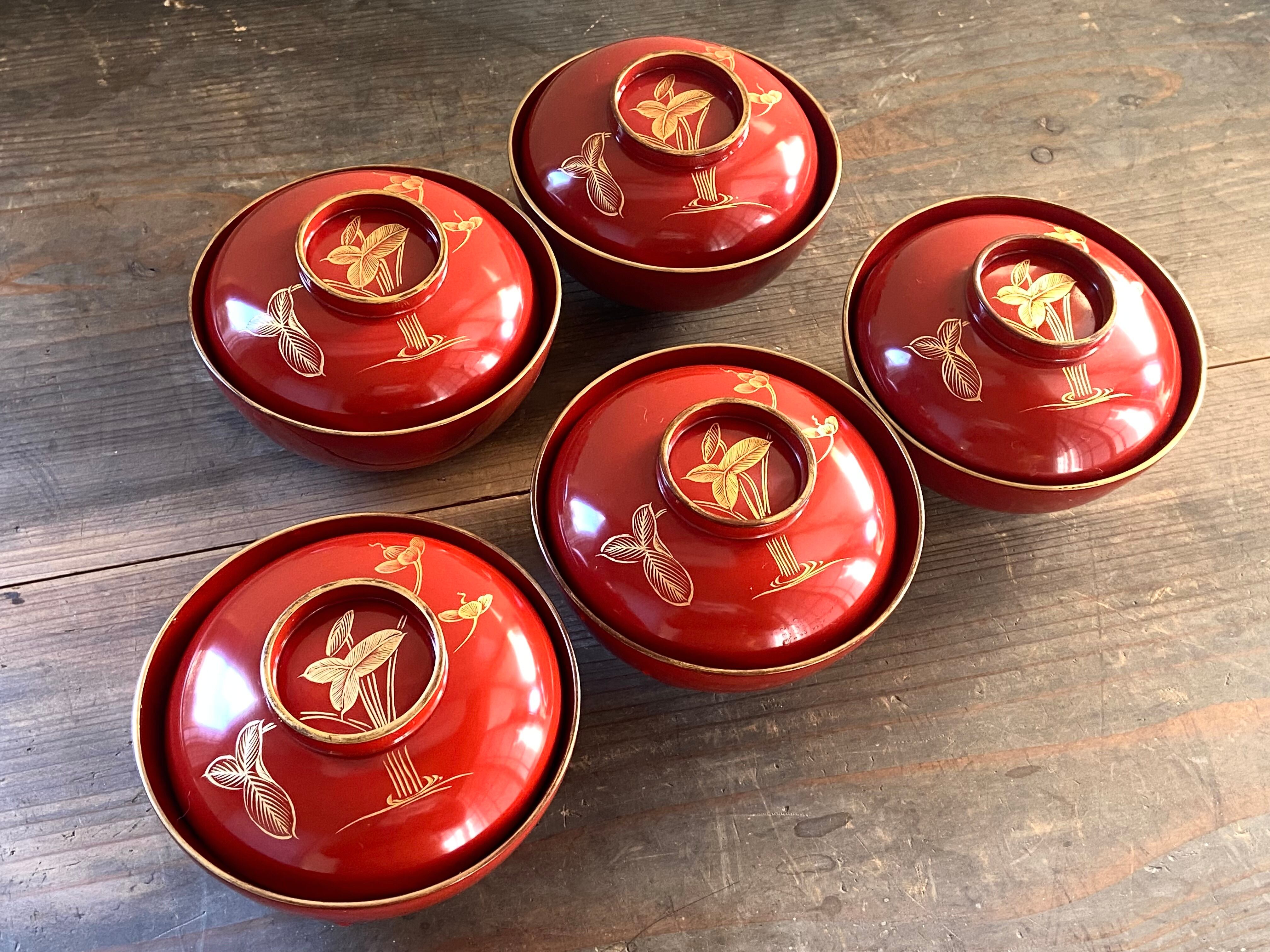 能登に伝わる古民芸 朱漆 沈金 蓋付椀 / 漆器椀 懐石椀 菓子椀