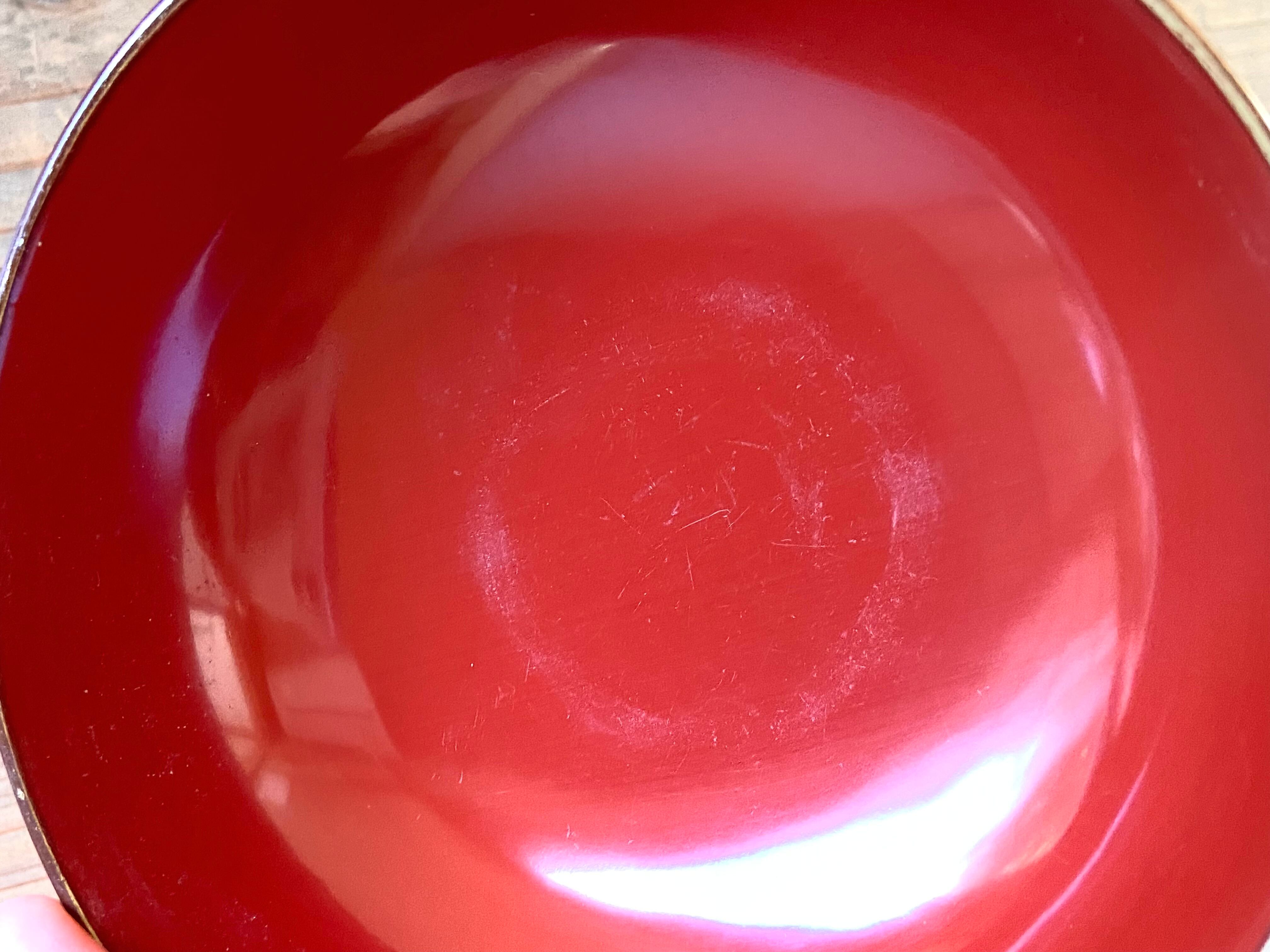 所々に経年による擦り傷、椀内と蓋裏にヤケが見られますが